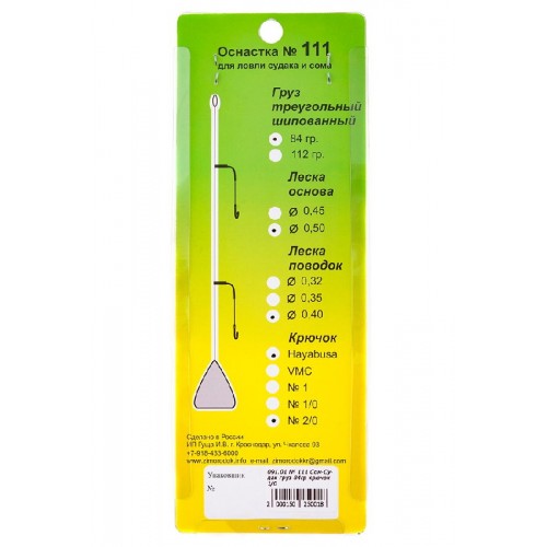 Оснастка Зимородок сом судак №111 84гр 1/0