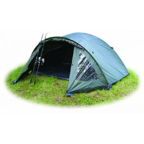 Палатка купольного типа с возможностью установки без тента, двухместная палатка для карповой ловли. Вход оборудован противомоскитной сеткой и дополнительным козырьком. Планировка палатки рассчитана на создание дополнительного комфорта при проживании. Швы проклеены, что гарантирует полную защиту от воды. Внутри палатки есть карманы. Для вентиляции предусмотрены окна с ветровым клапаном.