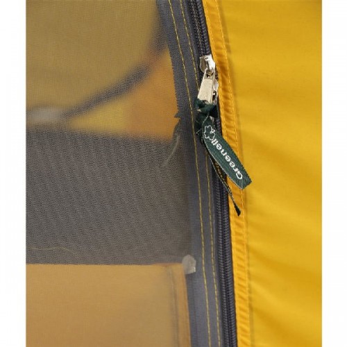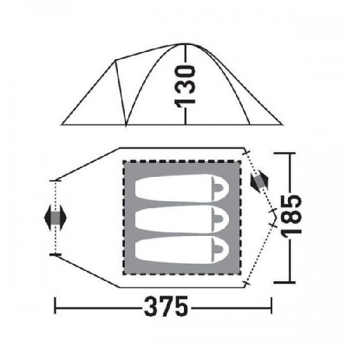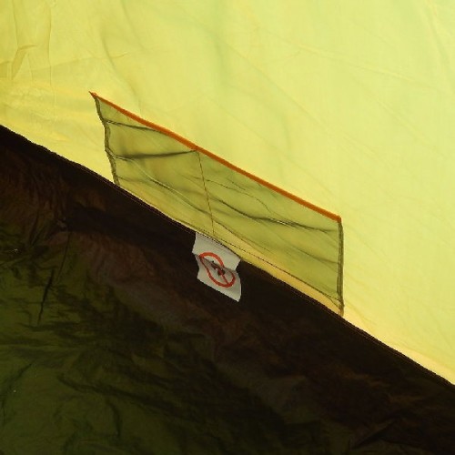 Вставки из сетки по бокам внутренней палатки высотой 52 см, плюс, треугольные вставки на потолке 30х70 см. Оба входа продублированы сеткой. Размер вентиляционных окон на тенте 16х44 см;
