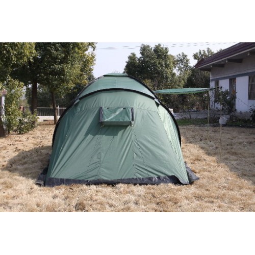 Палатка для туризма имеет два входа, для большего удобства. Козырек на входе позволит скрыться от солнца, сидя у палатки, или оставить там обувь, не занося внутрь тамбура, если пошел мелкий дождь.