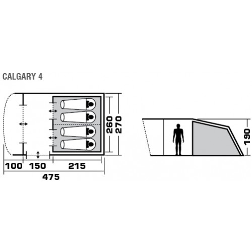 Четырехместная двухслойная современная кемпинговая палатка TREK PLANET "Calgary 4" с вместительным тамбуром с пришитым к нему полом, позволяющим с максимальным комфортом расположиться внутри всей семьей или небольшой компании отдыхающих. Благодаря москитным сеткам на обеих входах в тамбур в полный размер двери и трем большим обзорным окнам, достигается отличная вентиляция и превосходный обзор из палатки.