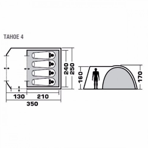 Четырехместная двухслойная кемпинговая высокая палатка TREK PLANET "Tahoe 4" с хорошей вентиляцией и большим и светлым тамбуром, хорошо подойдет для кемпинга выходного дня или отдыха на природе с семьей.