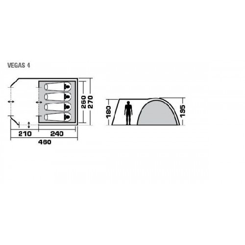 Четырехместная двухслойная современная кемпинговая палатка TREK PLANET "Vegas 4" с вместительным светлым помещением, с двумя обзорными окнами и двумя входами в тамбур.