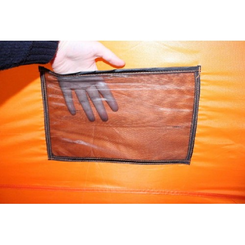 - 2 вентиляционных окна с ветровым клапаном с ветровым клапаном и сеткой, защищающая от попадания снега при сильном ветре и дающие хорошую циркуляцию воздуха в палатке.