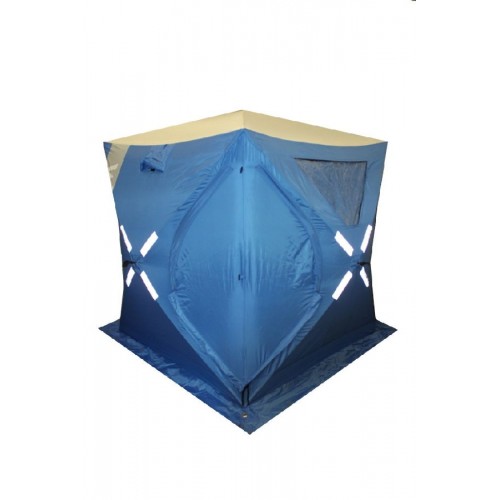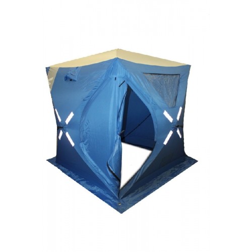 Прочный каркас из стекловолокна (фибергласс) обеспечивает надежное сохранение кубической формы в сильный ветер и препятствует накоплению влаги и снега на крыше палатки. Прочный, водостойкий и термо сберегающий материал тента, с широкой по всему периметру снегозащитной юбкой, обеспечивает полную защиту от ветра, снега и дождя.