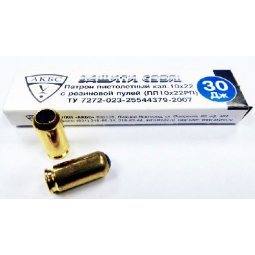 Боеприпасы "АКБС" наиболее широко представлены среди патронов 10х22Т. Первые пробные партии патронов этого производителя поступили в продажу осенью 2007 года. Они снаряжались твердым шариком и отличались хорошими показателями мощности. Начиная с лета 2008 года, был налажен серийный выпуск двух видов боеприпасов: "спортивных" мощностью 30 Дж и "стандартных" - 50 Дж, но уже с мягким шариком, что вызвало определенные нарекания по кучности и надежности. С осени 2008 года патроны производства "АКБС" вновь стали снаряжаться твердой сферической пулей.