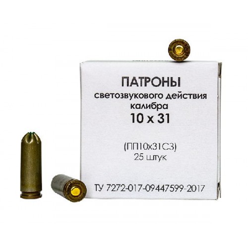 Патроны светозвуковые (шумовые) Фортуна 10х31 предназначены для имитации выстрела из списанного (охолощенного) оружия. Используется для стрельбы из списанного (охолощенного) оружия модели ППШ-СХ и ТТ-СХ. Патрон травмобезопасен, стрельба с помощью них громкая и эффектная. В упаковке 25 штук.