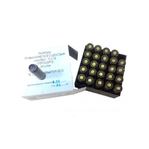 Патрон 10х32Т Фортуна - патрон травматического действия калибра 10х32 (ПП10х32РП). В коробке 25 патронов.