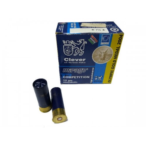 Патрон для охотничьего гладкоствольного оружия 12 калибра. Произведен в Италии на патронном заводе "Clever Mirage". При изготовлении патрона использована пластмассовая гильза с различной высотой металлического основания в зависимости от назначения и развиваемого давления пороховых газов.