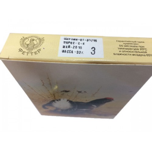 Патроны производятся на российском патронном заводе «Феттер» и предназначены для использования в охотничьих и спортивных ружьях. Тематический патрон с навеской дроби 32гр. Патрон показывает хорошую кучность и убойную силу, при этом отдача от патрона комфортная. Патрон подходит для всех ружей 12 калибра.