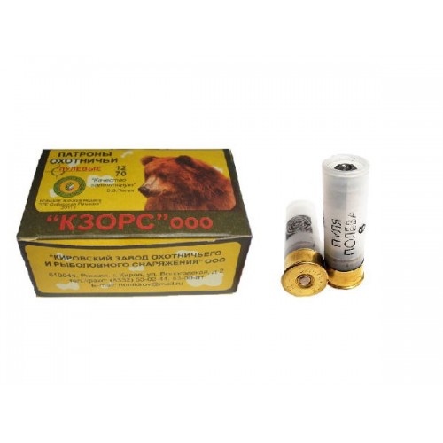 Патроны КЗОРС производятся на российском патронном заводе «Кировский завод охотничьего и рыболовного снаряжения» и предназначены для использования в охотничьих и спортивных ружьях. Разработанные на заводе охотничьи пули конструктора Виктора Владимировича Полева не имеют аналогов в мире по точности поражения цели. Точность выстрела на дистанциях до 200 м сравнима с точностью выстрела из нарезного оружия. Максимальный диаметр рассеивания пуль на дистанции до 200 м - 150-200 мм.