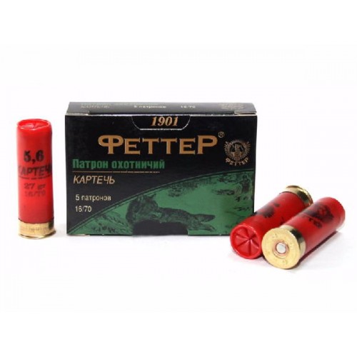 Патрон "Феттер" можно эффективно использовать при охоте на волка, рысь, косулю. Картечь 5.6 миллиметров можно использовать с дульными сужениями, вплоть до полного чока (1.0 мм). Патрон показывает кучность 72 % на дистанции 35 метров при дульном сужении 0.75 мм.