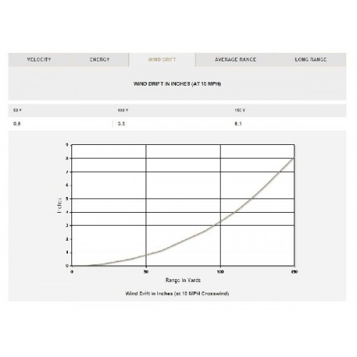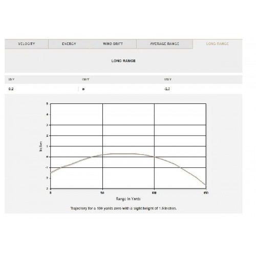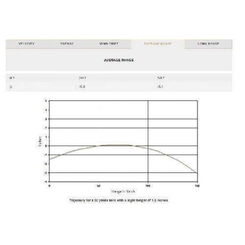 Высокая скорость пули обеспечивает настильность траектории на дистанции до 150 метров.