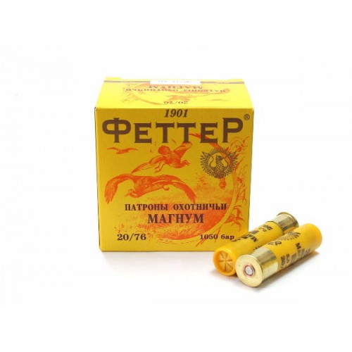 Такой патрон существенно расширяет возможности оружия 20 калибра с патронником 76 миллиметров, обеспечивая резкий и кучный бой, в сочетании с дульными сужениями 0,75 мм и 1,00 мм. С данным патроном, имея оружие 20 калибра, Вы получаете возможности ружья 12 калибра.