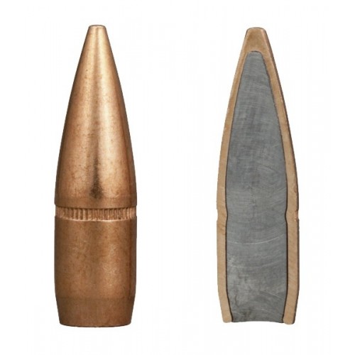 Патрон 223 Rem оснащен пулей FMJ BT, расшифровывается как Full Metal Jacket Boat Tail. Такая пуля, благодаря своей аэродинамической форме уменьшает сопротивление воздуха.