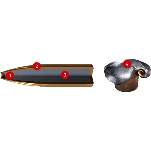 Защищенная выемка в головной части обеспечивает быстрое и оптимальное раскрытие на любых расстояниях и при любых скоростях удара. Кроме того, такая конструкция обеспечивает сохранение конца пули в отличном состоянии при заряжании и разряжании оружия, что крайне важно для сохранения высокой точности.