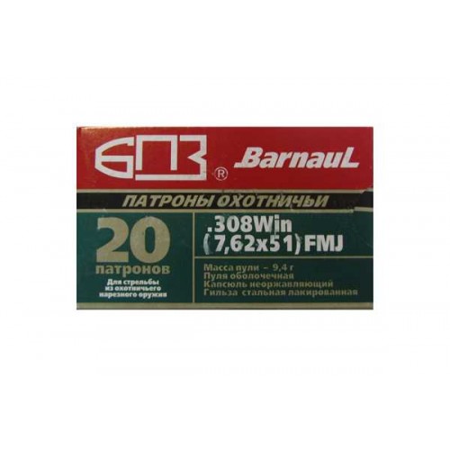 Патрон 308Win БПЗ FMJ Gold 9,4г латунь