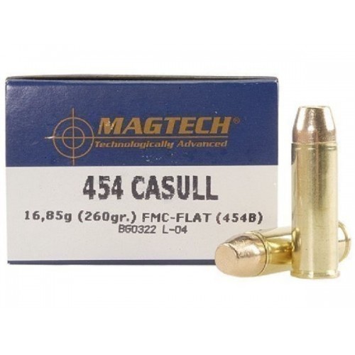 Патрон 454 Casull Magtech 16,8 СBС FMJ-Flat рекомендуется применять для матчевой и целевой стрельбы. Пуля в цельнометаллической оболочке с плоским носиком.