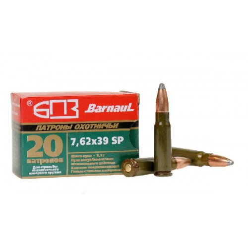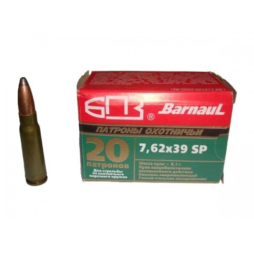 Патрон 7,62x39 БПЗ лак SP с полуоболочечной пулей экспансивного действия для стрельбы из охотничьего нарезного оружия. Пуля со свинцовым сердечником. Капсюль "Бердан" нержавеющий. Гильза стальная лакированная. Упаковка: 20 штук в пачке.
