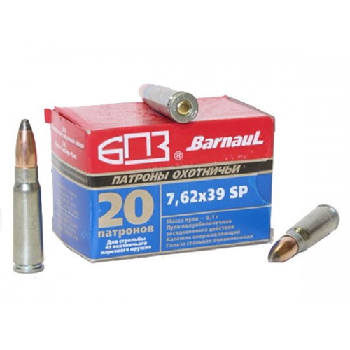 Патроны калибра 7.62х39 для охотничьих карабинов. В патронах используется тяжелая пуля массой 8.1 грамма (125 гран). Пули полуоболочечные, обладают экспансивным действием на цель. Вкупе с большим весом такая пуля, выпущенная со скоростью 772 м/с хорошо подходит для охоты на крупную дичь.