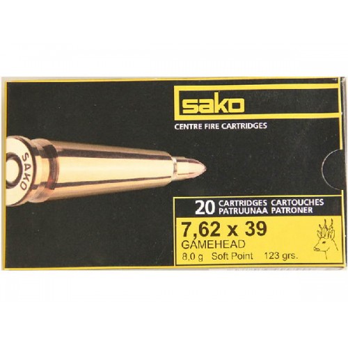 Патрон 7,62x39 Sako 8,0 Gamehead SP - традиционный, относительно недорогой, имеет мягкую и точную пулю с оголённым в головной части сердечником, обладающая высоким убойным действием. Sako Gamehead - отличная универсальная пуля для малых и средних охот.