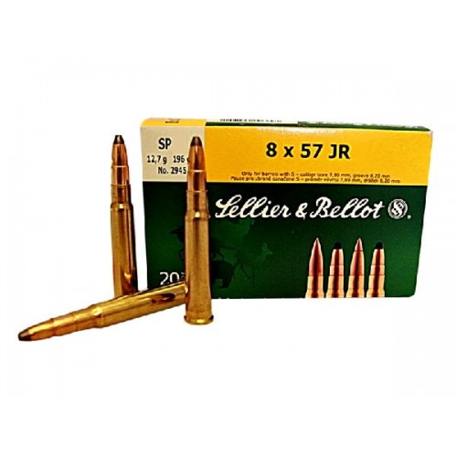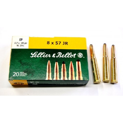 Патрон 8x57JR снабжен классической полуоболочечной пулей с открытой носовой частью SP (Soft Point). Свинцовый сердечник сильно оголён. Благодаря конструкции обеспечивает быстрое раскрытие и нанесение очень тяжёлой раны, вследствие чего обладает огромной останавливающей силой. В соответствующих калибрах, хорош для отстрела крупного опасного зверя на коротких дистанциях.