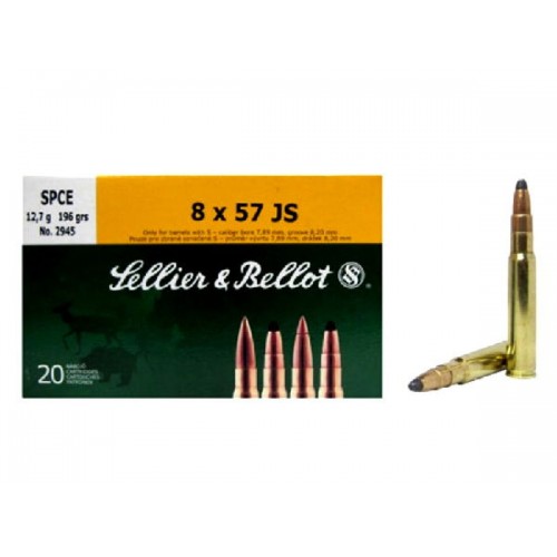 Патрон 8х57JS c модифицированной полуоболочечной пулей SPCE (Soft Point Cutting Edge). Благодаря особой конструкции обеспечивается быстрое раскрытие преимущественно носовой части пули, что приводит к нанесению глубокого ранения умеренной ширины. В средней части имеется специальный уступ – для обрезания краев входного отверстия (рана дольше кровоточит, не затягиваясь). Отличный выбор для охоты на копытных.