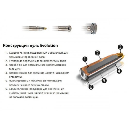 Специальная технология сплавления свинцового сердечника с оболочкой из томпака Power Bonding обеспечивает сохранение остаточной массы пули RWS Evo. С патроном RWS EVO вероятность сквозного выстрела в разы выше.