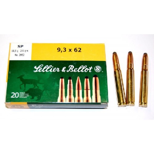 Патрон 9,3х62 имеет классическую полуоболочечную пулю SP (Soft Point) с открытой носовой частью (свинцовый сердечник сильно оголён). Благодаря конструкции обеспечивает быстрое раскрытие и нанесение очень тяжёлой раны, вследствие чего обладает огромной останавливающей силой. В соответствующих калибрах, пуля хороша для охоты на крупного опасного зверя на коротких дистанциях. Свойства пули: сильная деформация, умеренная проникающая способность. Начальная скорость, м/с: 695. БК пули: 0,311. Объект охоты: олень, лось, кабан, медведь. Возможно: коза. Количество в пачке: 20 шт.