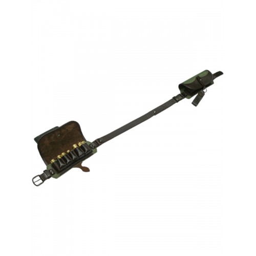 Патронташ предназначен для ношения патронов с отдельными ячейками для каждого патрона. Вмещает 22 патрона 12 калибра. Закрытый стильный патронташ выполнен из натуральной кожи.