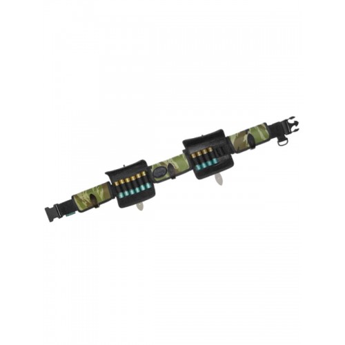 Патронташ предназначен для ношения патронов с отдельными ячейками для каждого патрона. Патронташ состоит из 5 подсумков. Вмещает 30 патронов 12 калибра. Застежка фастекс.