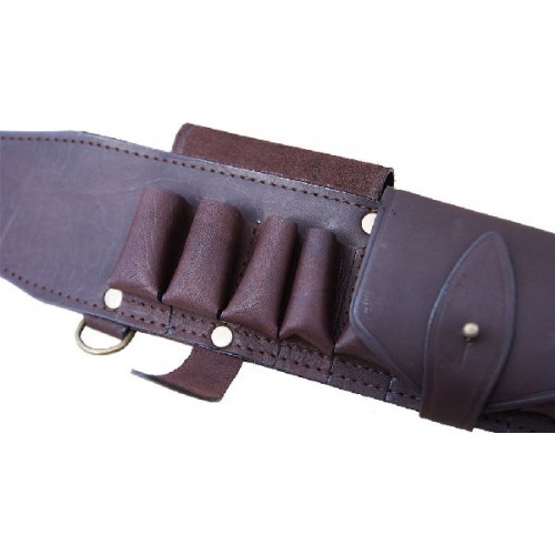 Изготовлен в традиционной форме из натуральной кожи. В комплекте с подвесной системой. Патронташ надежно держит 20 патронов в лузах. Позволяет загрузить патроны снаряженные в гильзы длиной от 70 мм до 89 мм. Оснащен клапанами для защиты патронов от не погоды. В производстве используется итальянская фурнитура, которая практически не дает бликов. Раскрой производится на специальном оборудовании, что гарантирует высокое качество.