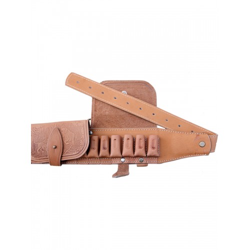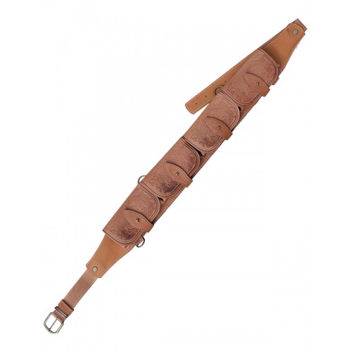 Изготовлен в традиционной форме из натуральной кожи. Патронташ надежно держит 24 патрона в лузах. Позволяет загрузить патроны снаряженные в гильзы длиной от 70 мм до 89 мм. Оснащен клапанами для защиты патронов от не погоды. В производстве используется итальянская фурнитура, которая практически не дает бликов. Раскрой производится на специальном оборудовании, что гарантирует высокое качество. Изделие украшено миниатюрами охотничьей тематики, нанесенными методом горячего тиснения.