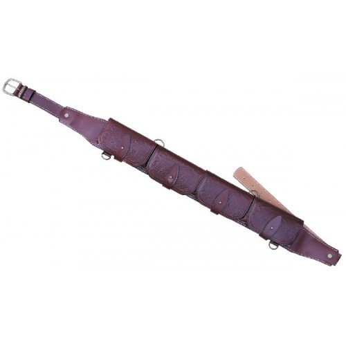 Изготовлен в традиционной форме из натуральной кожи. Патронташ надежно держит 24 патронов в лузах. Позволяет загрузить патроны снаряженные в гильзы длиной от 70 мм до 89 мм. Оснащен клапанами для защиты патронов от не погоды. В производстве используется итальянская фурнитура, которая практически не дает бликов. Раскрой производится на специальном оборудовании, что гарантирует высокое качество. Изделие украшено миниатюрами охотничьей тематики, нанесенными методом горячего тиснения.
