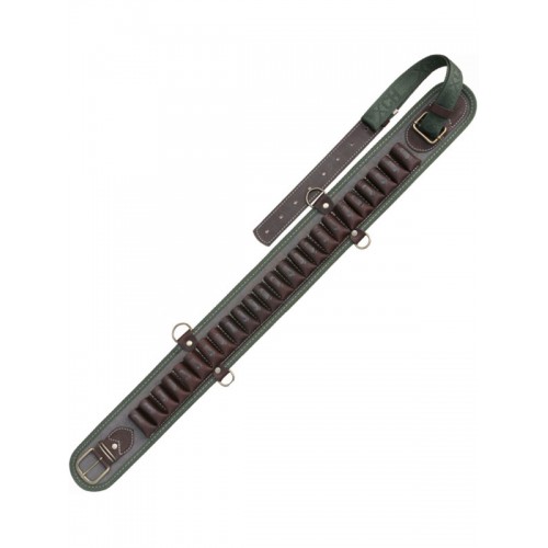 Изготовлен в традиционной форме из специальной ткани и натуральной кожи. Патронташ надежно держит 24 патрона в лузах. Позволяет загрузить патроны снаряженные в гильзы длиной от 70 мм до 89 мм. В производстве используется итальянская фурнитура, которая практически не дает бликов. Раскрой производится на специальном оборудовании, что гарантирует высокое качество.