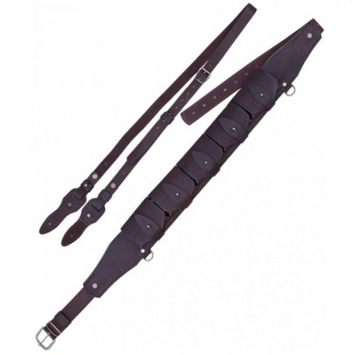 Патронташ "К-12 20 п-н пятиклапанный" на 20 патронов позволяет загрузить патроны, снаряженные в гильзы длиной от 70мм до 89мм. Оснащен клапанами для защиты патронов от непогоды. Украшен миниатюрами охотничьей тематики, нанесенными методом горячего тиснения.