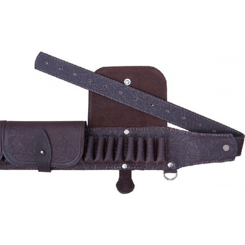 Патронташ "К-20 24 222" из натуральной кожи вмещает 24 патрона 20-го калибра. Позволяет загрузить патроны, снаряженные в гильзы длиной от 70 мм до 76 мм. Украшен миниатюрами охотничьей тематики, нанесенными методом горячего тиснения.