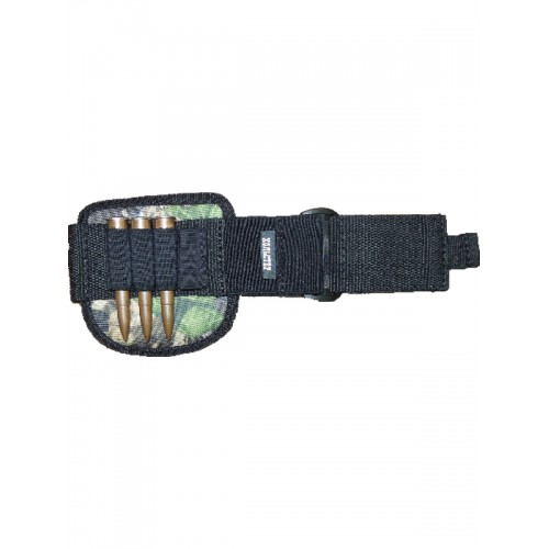 Открытый патронташ на 4 патрона к нарезному оружию калибра 7,62 мм. Может носиться как на плечевой части руки, так и на предплечье, благодаря регулируемой застежке из «велкро». Патронташ изготовлен из прочного синтетического материала, долговечного в эксплуатации и легкого в уходе.
