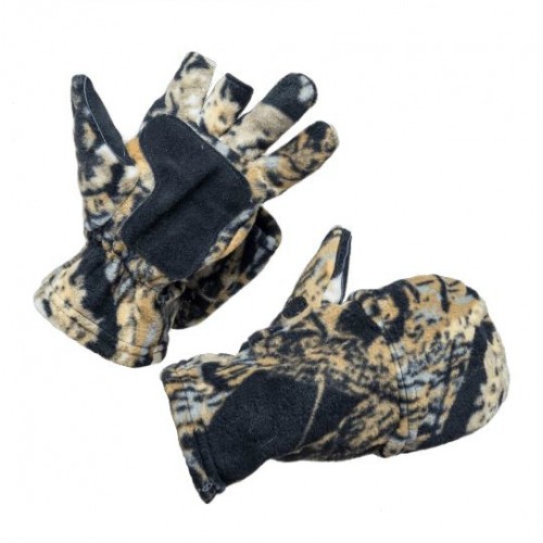 Модель совместила в себе теплые рукавицы и перчатки, с отрезанным средним и указательным пальцами, а так же отверстием для большого пальца. Теперь, сняв рукавицу, вы сможете с легкостью нажать на курок или заменить наживку на крючке. На ладони и большом пальце накладка из спилока, повышающая износостойкость изделия.