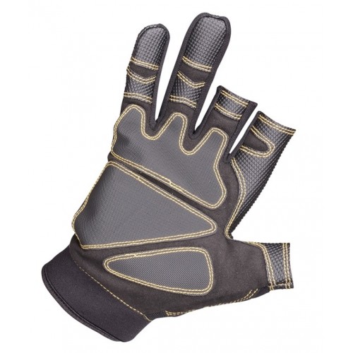 Перчатки SPRO Armor 3 finger cut -необходимая деталь одежды рыболова. Созданы из влагоустойчивого и дышащего материала, они плотно облегают руку, очень удобны и эластичны. На ладонях перчатки имеют нескользящее резиновое покрытие. На каждой руке в данном изделии открыты три основные рабочие пальца, таким образом, чтобы было удобнее работать с приманками и удилищем.