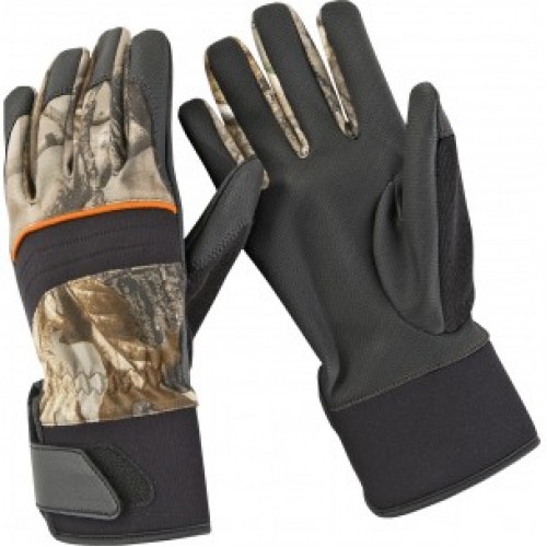 Современные, гибкие и в тоже время жесткие в фиксации перчатки для охоты. Верх выполнен в камуфляжной расцветке, ладони - из нейлона, обеспечивающего хороший захват винтовки. Оснащены ремешком для регулирования объема вокруг запястья.