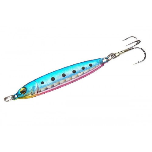 Это классический пилькер, имеющий с виду незамысловатое тело, две петли для привязывания и крючка и качественную покраску с голограммой, но вы удивитесь на что способна эта брусковатая приманка.