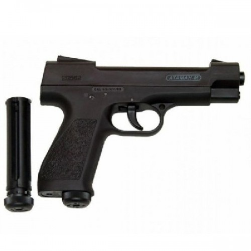 Конструкция реализована на основе подвижного ствола, который накатывается на клапан, являясь, по сути, ударником обратного действия. Корпус выполнен из высокопрочного полимера, что позволило снизить общий вес оружия без потери надежности. Пистолет пневматический Атаман М - очень мощное оружие, по реальной начальной скорости пули с ним может конкурировать разве что длинноствольный Аникс 112, известный как раз своей мощью.