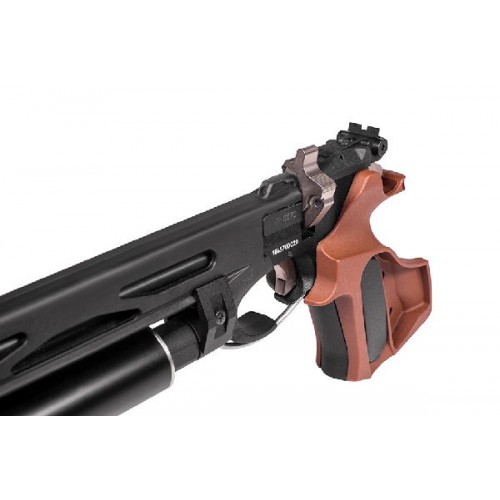 Источник энергии — отделяемый баллон с воздухом высокого давления (до 200 атм). Дульная энергия до 7.5 Дж — может приобретаться в специализированных оружейных магазинах без лицензий и регистрации. Ствол с дульным сужением. Откидывающийся пулеприемник.