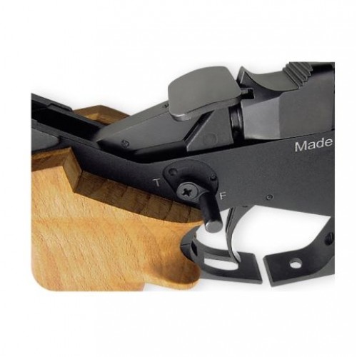 Так как пистолет спортивный, имеется широкие возможности настройки спускового механизма. Усилие спуска УСМ регулируемо от ; 3.9 н до 9.8 н, ход спускового крючка регулируем в диапазоне 0.2 мм до 2 мм