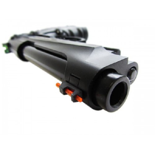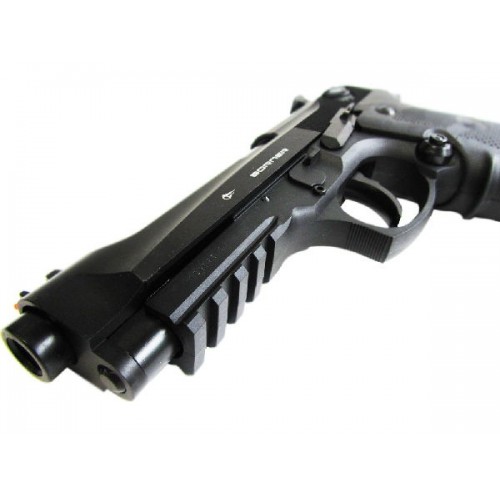 Точная массогабаритная пневматическая копия Beretta 92. Использованная в конструкции система "блоубэк" только добавляет реалистичности. В момент выстрела, за счет давления газа из баллончика, затвор пистолета движется назад и создает отдачу характерную для выстрела из боевого оружия. Для стрельбы используются металлические шарики. В обойму помещается 19 штук таких шаров, что позволяет вести довольно беглый огонь. Весит модель внушительные 750 г.