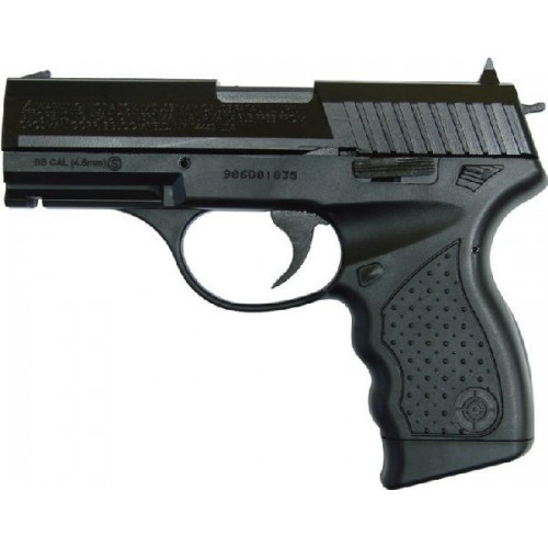 Газобаллонный пневматический пистолет Crosman PR077CS предназначен для спортивной и развлекательной стрельбы на средних и малых дистанциях. Внешне Crosman PR077CS подобен боевым пистолетам, однако по сравнению с ними он компактнее и легче. Модель снабжена достаточно вместительным магазином, рассчитанным на 17 сферических пуль. Одна из главных особенностей пистолета – уникальная скорострельность: производить выстрелы можно настолько быстро, насколько вы успеваете нажимать на курок. Crosman PR077CS снабжен системой имитации отката затвора «блоубэк». Под стволом расположена база, предназначенная для крепления различных аксессуаров (лазерного целеуказателя, фонаря и т.д.).
