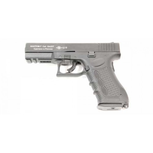 Травматический пистолет Фантом-Т под патрон калибра 11Х22Т сертифицирован как огнестрельное оружие ограниченного поражения. Применяется для личной самозащиты и развлекательной стрельбы по мишеням. Сконструирован на базе пистолета Глок-17.