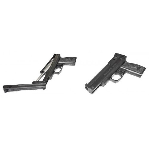 Пистолет Gamo AF-10 – маломощная мультикомпрессионная модель, отличающаяся тихим звуком выстрела, надежностью и безотказностью. Пистолет довольно прост в обращении. Источник энергии – предварительная накачка воздуха. Трубчатый подствольный магазин вмещает 10 стальных шариков. также пистолет может стрелять свинцовыми пульками. Подача пуль в стол производится автоматически при взводе пистолета.