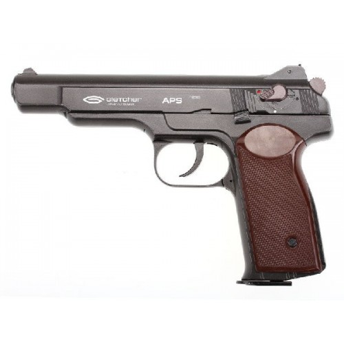 Gletcher APS NBB - это пневматическая копия одного из легендарных пистолетов - автоматический пистолет Стечкина. Пистолет Gletcher APS имеет две разные модификации - с особой системой blowback и без нее (эта модель без blowback). На первое место, тем не менее была поставлена именно точность исполнения. Габаритные размеры здесь как у огнестрельного аналога, металлические корпус и затвор пистолета, вес за килограмм. Даже цвет и текстура рукояти точно повторяет огнестрельный аналог.